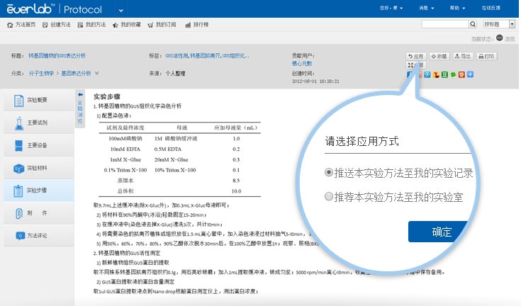 Protocol实验方法聚合平台旨在为用户构建一个标准规范的实验方法资料库,使用户能基于此创建、共享并及时交流在科研工作中使用到的实验方法及相关信?? 开始使?i class="arrow-r">